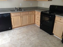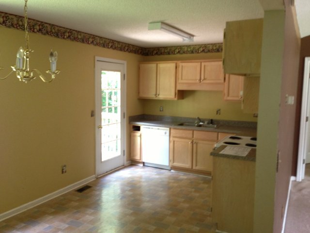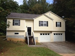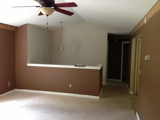 Split level home with kitchen, living room and 2 car garage.