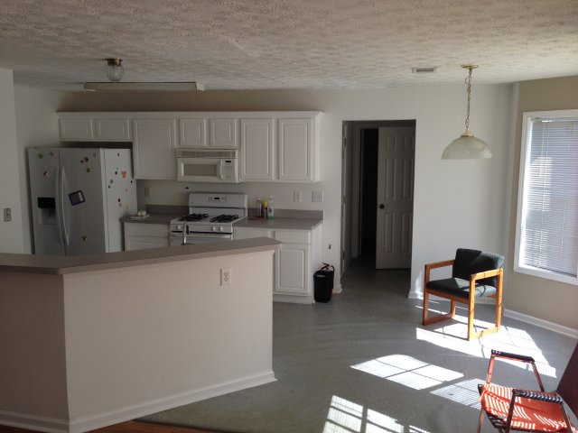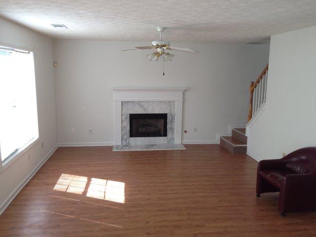Two story brick front home with kitchen, living room, dining room and 2 car garage.