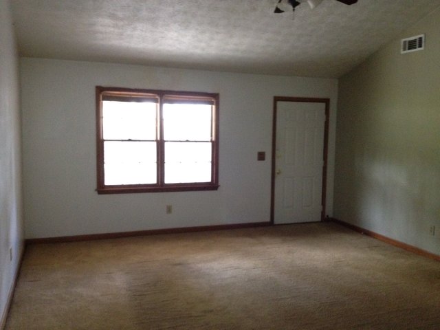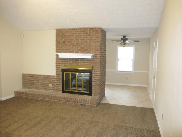 Ranch home with fireplace, family room, kitchen, and wooded back yard. Property foreclosed for $115,401 in 2012.