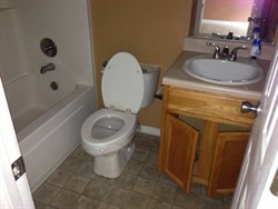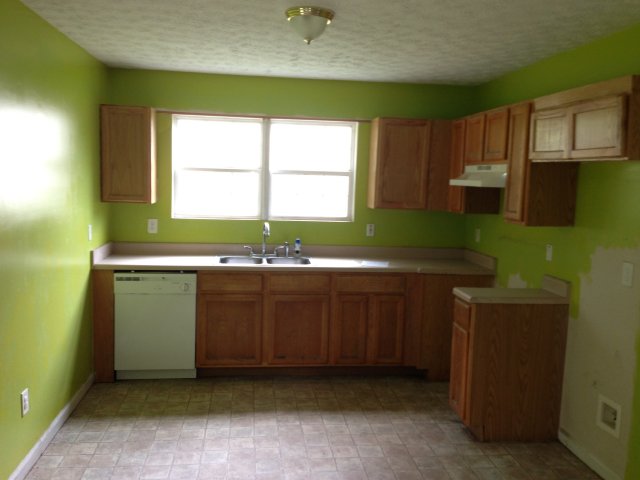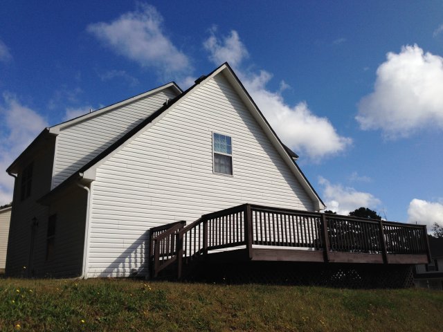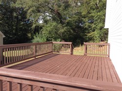 Two story home with kitchen, living room, large deck, garage and fireplace. TENANT IN PLACE