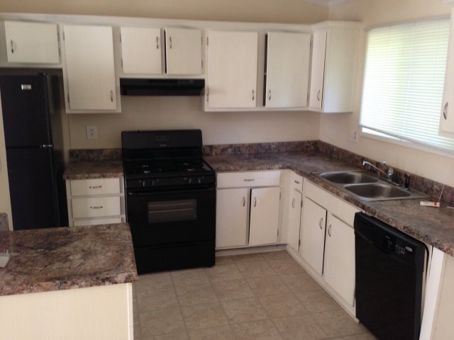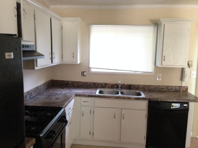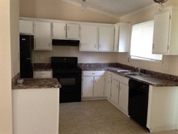 Home on corner lot, kitchen, living room, dining room, garage and spacious yard.