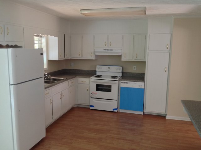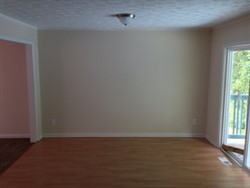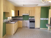 Two story home with kitchen, living room, dining room, large den and bedroom on lower level.