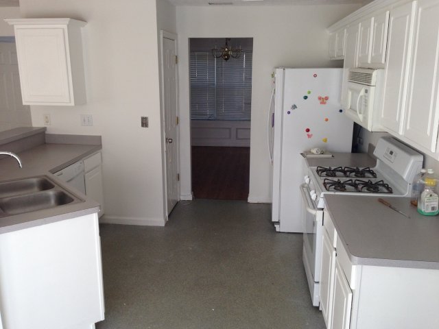 Two story brick front home with kitchen, living room, dining room and 2 car garage.
