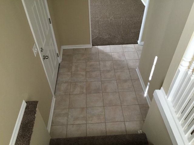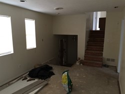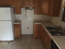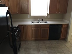 Two story home with kitchen, living area and more.